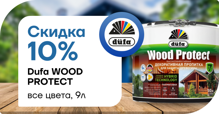 Скидка 10 % на декоративную пропитку Dufa Wood Protect